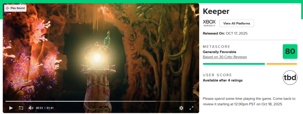مع صدورها هذا الأسبوع، بدأت Keeper — مغامرة ألغاز جوية بلا حوارات من Double Fine — تحصد إشادات قوية بصريًا وفكريًا، مع بعض التحفظات على بساطة الألغاز لدى بعض النقاد: