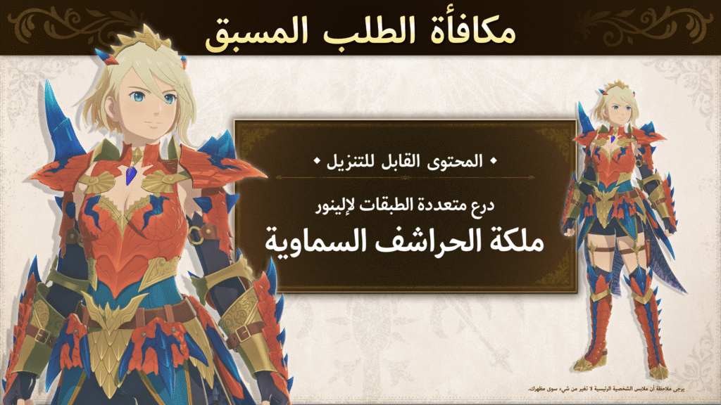 فتح الطلب المسبق يتضمن مكافأة فريدة — درع Layered Armor خاص بشخصية Eleanor the Skyscale Queen، يمكن تفعيله في اللعبة بعد فتح خيار “تغيير أزياء الرفاق”.