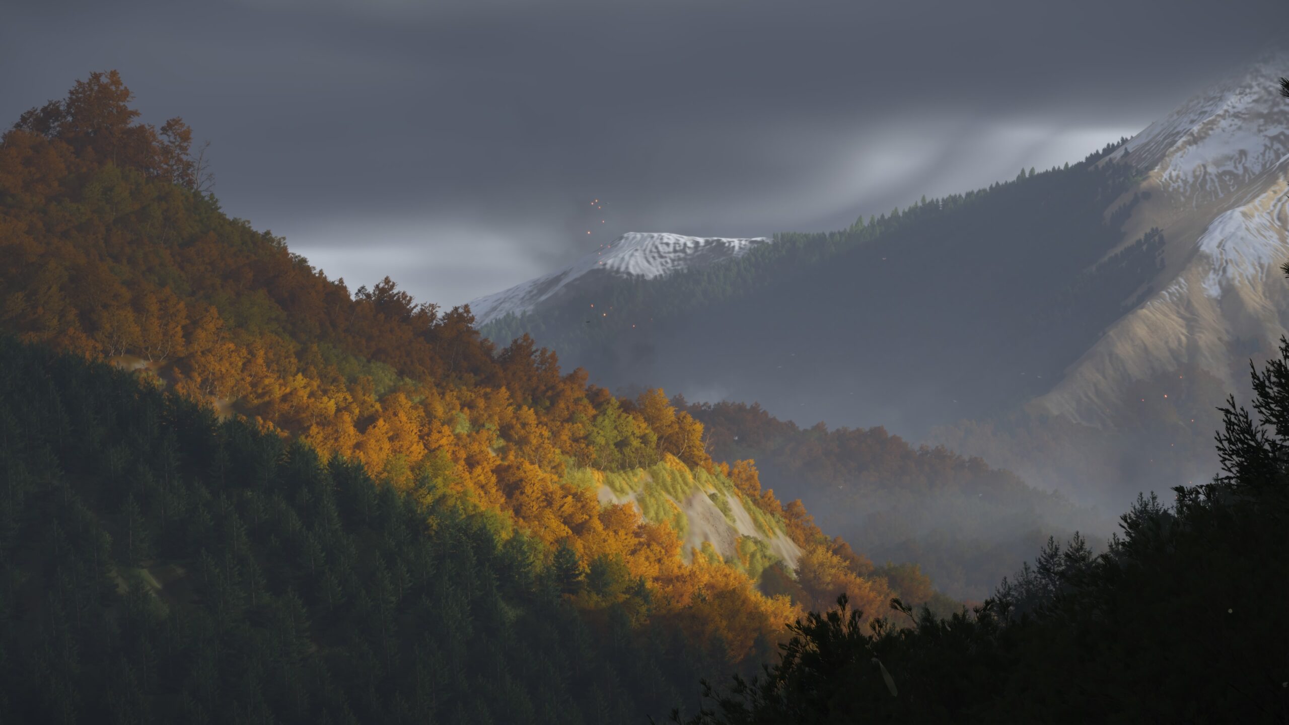 الثلوج التي تتساقط ببطء على قمم الجبال، الأنهار المتجمدة التي تعكس ضوء القمر، والضباب الذي يزحف عبر الغابات الصنوبرية.